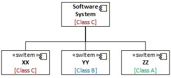 We now have safety classifications on each software item and able to create a breakdown structure as illustrated below.